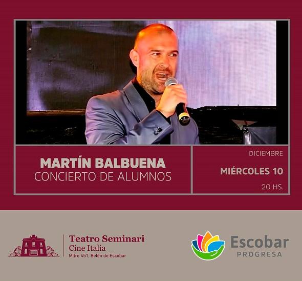 Martin Balbuena, quien es docente y cantante Escobarense, presenta el segundo Concierto del año 2025, donde se irán apreciando todos los géneros Musicales
